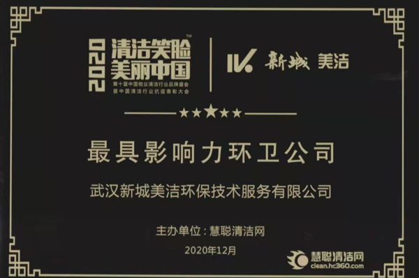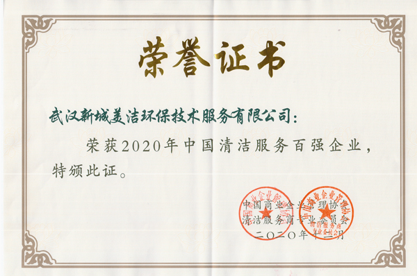 2020年中國清潔服務企業百強企業(榮譽證書)