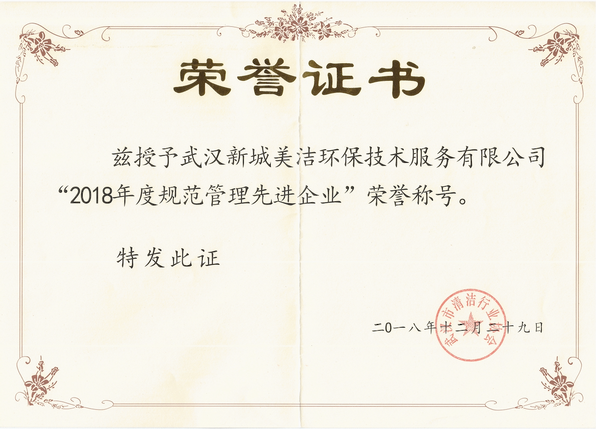 2018年規范管理先進企業